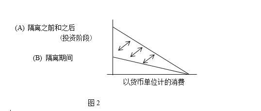 正如我们在图1中看到的,在这种情况下,社会时间偏好率突然、急剧的增加以牺牲投资为代价增加了即时货币消费(图b)。具体来说,生产过程中的许多阶段(以图c中的阴影区域表示)都被放弃了,很大一部分人口停止了工作(由于死亡或自愿),幸存者认真地致力于消费消费财货(其价格——以货币单位计——由于其供应减少和货币需求的广泛减少而飞涨)。时间市场中的交易和可贷资金几乎停止,少数发生借贷利率急剧上升。